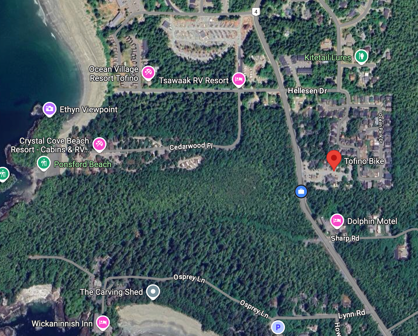 We are located in the legendary “Live to Surf parking lot complex” where you can find several other amazing businesses, including: Live to Surf, Tacofino, Wildside Grill, Chocolate Tofino, Tofitian Cafe, Forest and Waves, Arbutus Health, & Beaches Grocery.