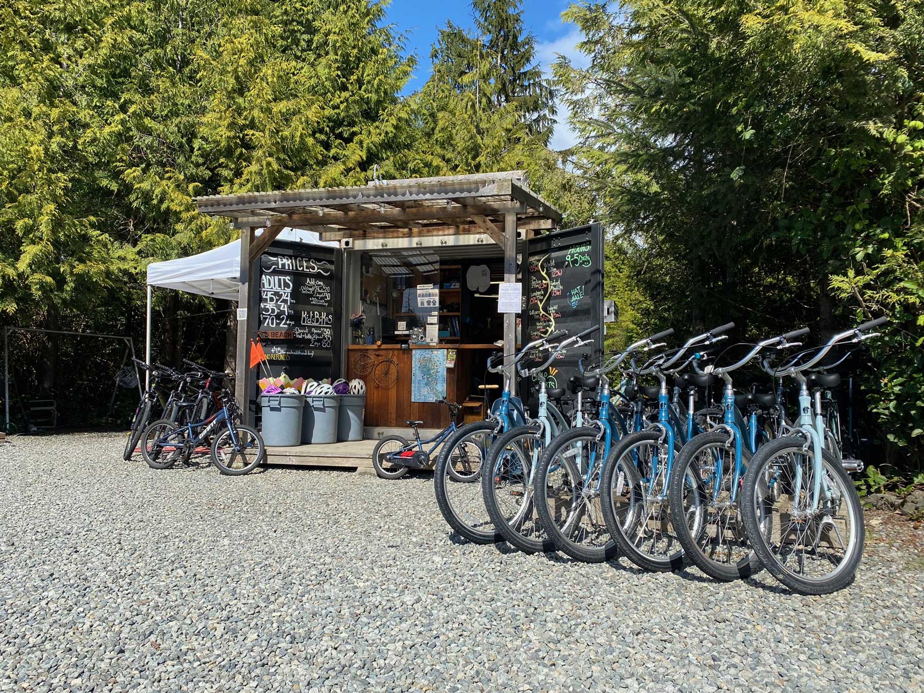1) We have the free shuttle (summer months only) which stops at many spots between the Tourism Tofino Info Centre across from Cox Bay, and downtown Tofino. One stop is right in front of our location.