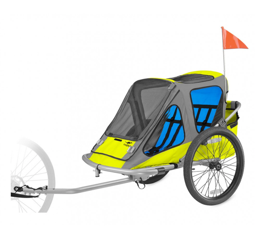 Hitches to the seatpost. Most compatible with our beach cruiser models. Permitted on the beach.